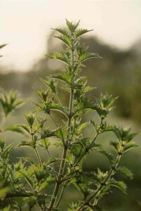 Als nächstes betrachten wir ein Blatt. Wir verfolgen mit unseren Augen die regelmässige, tiefe Kerbung, die sich über den ganzen Blattumfang zieht. Jetzt lassen wir die Gesamtgestalt des Blattes auf uns wirken. Spüren Sie, dass eine starke, rhythmisch schwingende Kraft am Bau dieser Blattgestalt gewirkt hat? Natürlich gibt es viele andere gekerbte oder gesägte Blätter, wie diejenigen der Brennnesseln oder der Gundelrebe. Es sind jedoch kleine Nuancen in Form und Grösse der Einkerbungen, die jeweils einen ganz anderen Charakter vermitteln. Bei der Brennnessel bringt das Zackenförmige der Zähnung das Aggressive des Pflanzenwesens zum Ausdruck, während beim Wolfstrapp die Kerben innen und aussen leicht abgerundet sind, so dass sie harmonisch ineinander übergehen.